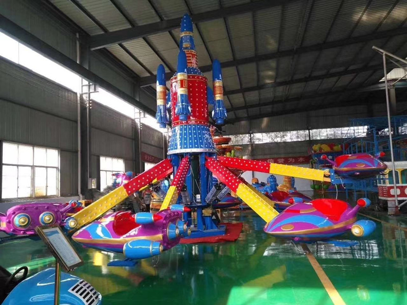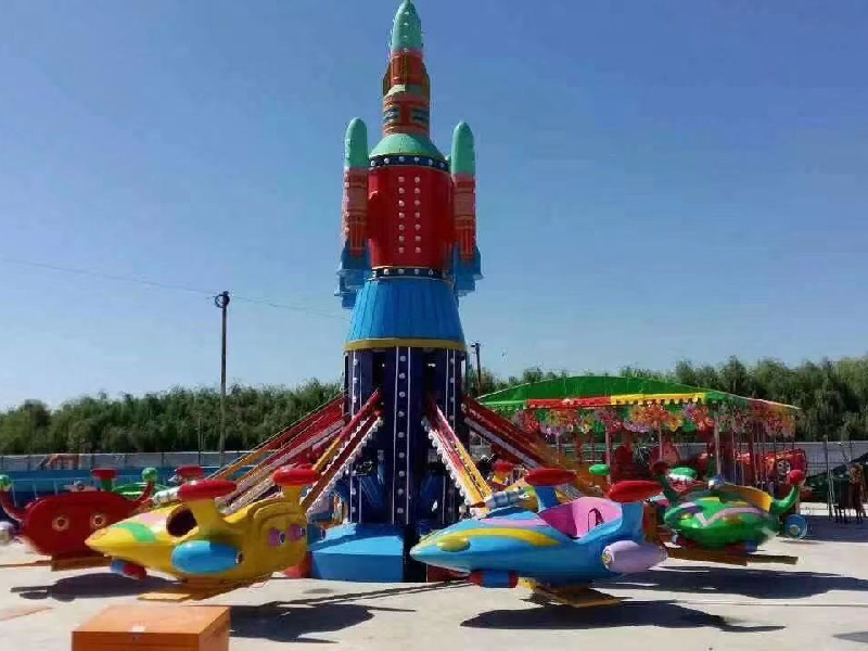 8臂自控飛機(jī)是由機(jī)械、氣動(dòng)與油壓和電氣系統(tǒng)組成,運(yùn)行特點(diǎn):繞垂直軸中心旋轉(zhuǎn)、升降自由。 運(yùn)行時(shí)8架飛機(jī)圍繞中心火箭旋轉(zhuǎn),并逐漸上升,游客在飛行中緊握操縱桿隨意升降,互相追逐,令人樂(lè)而忘返,新穎的造型、華麗迷人的彩燈裝飾,逼真刺激的空戰(zhàn)音響效果,它具有空云駕之驚險(xiǎn),自由之悠閑,是種游客可自己控制升降的現(xiàn)代游樂(lè)設(shè)施。